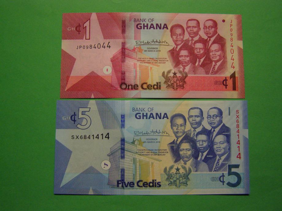 Prodam bankovca za 1 in 5 Cedis iz Gane (1, 5 GHS), kot ju lahko vidite na fotografijah in sta povsem nova - UNC kvalitete.