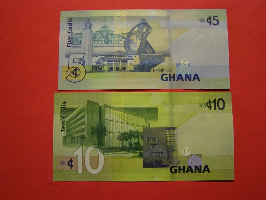 Prodam bankovca za 5 in 10 Cedis iz Gane (5, 10 GHS), kot ju lahko vidite na fotografijah in sta povsem nova - UNC kvalitete.