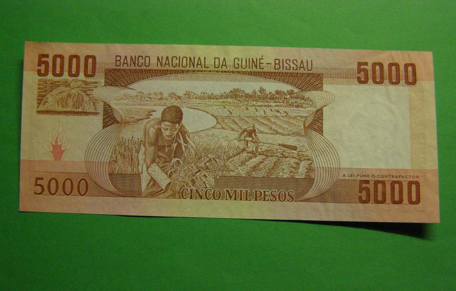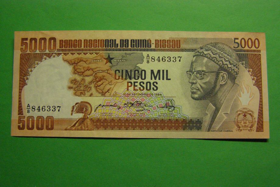 Prodam bankovec 5.000 Pesos iz Gvineje Bissao (5000 GWP), kot ga lahko vidite na fotografijah. Bankovec ni nov, je pa v odličnem XF++++ stanju, oz. kvalitete.