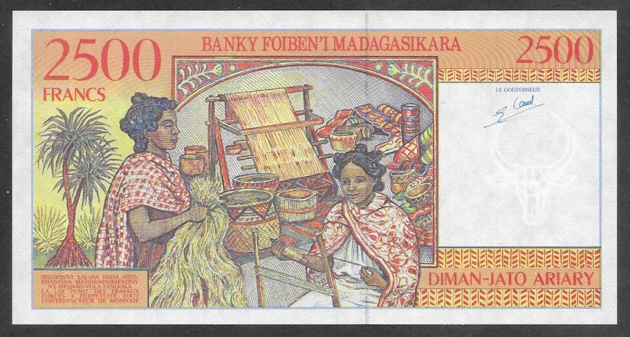 sprednja stran prikazuje žensko z Madagaskarja, v daljavi pa kraljičino palačo v Tannanarivu