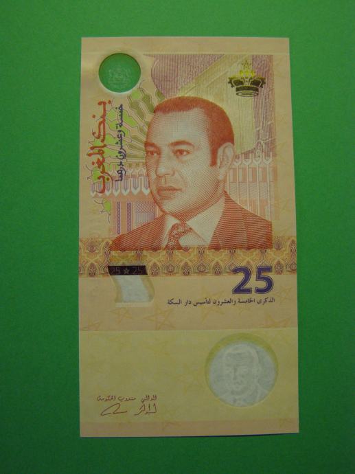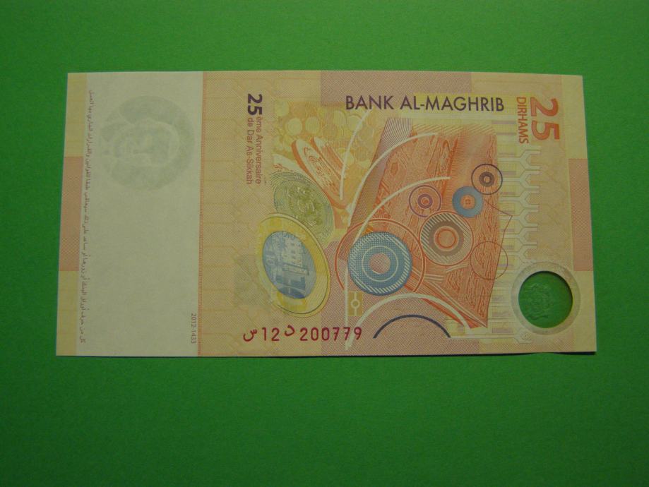 Prodam HIBRIDNI bankovec za 25 Dirham iz Maroka (25 MAD), kot ga lahko vidite na fotografijah in je povsem nov - UNC kvalitete.