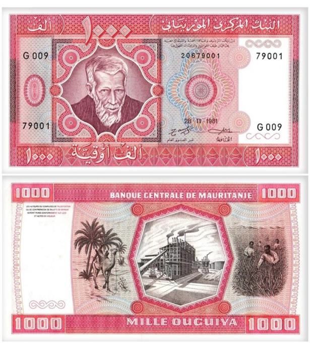 Krasen bankovec za 1000 ouguiya, neizdan.
