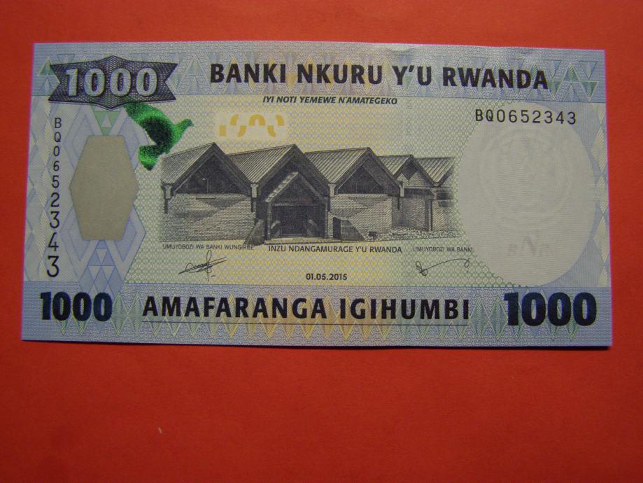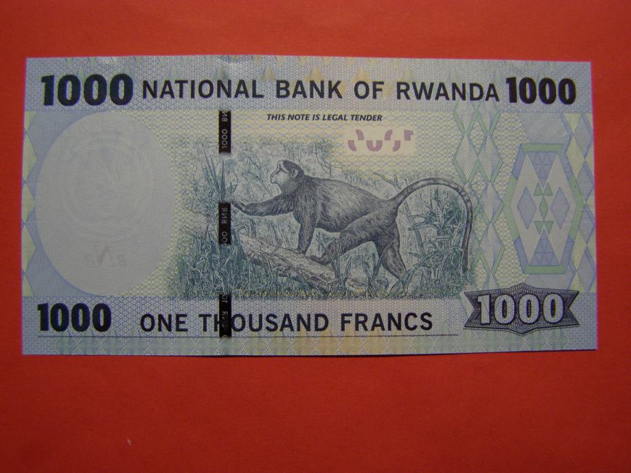 Prodam bankovec za 1000 Frankov iz Ruande (1000 RWF), kot ga lahko vidite na fotografijah in je povsem nov - UNC kvalitete.