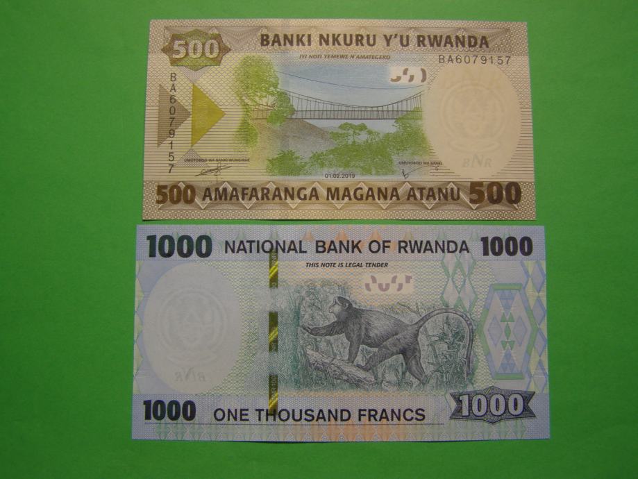 Prodam bankovca za 500 in 1000 Frankov iz Ruande, kot ju lahko vidite na fotografijah. Bankovca sta povsem nova - UNC kvalitete.