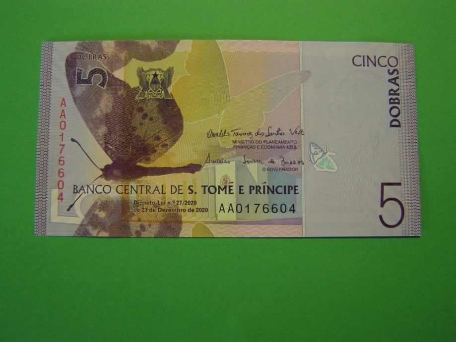 Prodam BOMBAŽNI bankovec za 5 Dobras (5 STD) iz Sao Tome E Principe, kot ga lahko vidite na fotografijah in je povsem nov - UNC kvalitete.