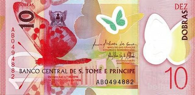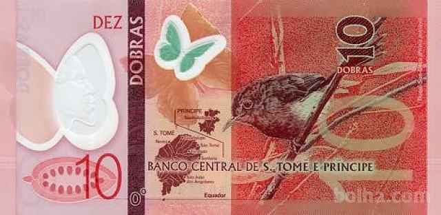 Bankovec otoške države Sveti Tomaž in Princ (São Tomé e Príncipe) s podobo ptiča in metulja.