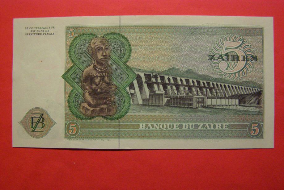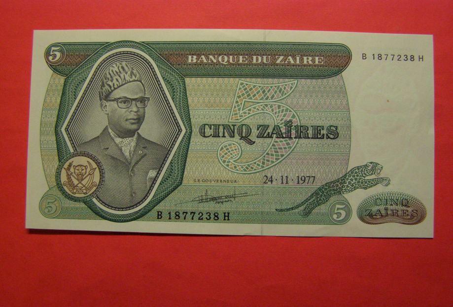Prodam bankovec za 5 Zairov (5 ZRN) iz Zaira, kot ga lahko vidite na fotografijah. Bankovec je povsem nov, vendar aUNC kvalitete.