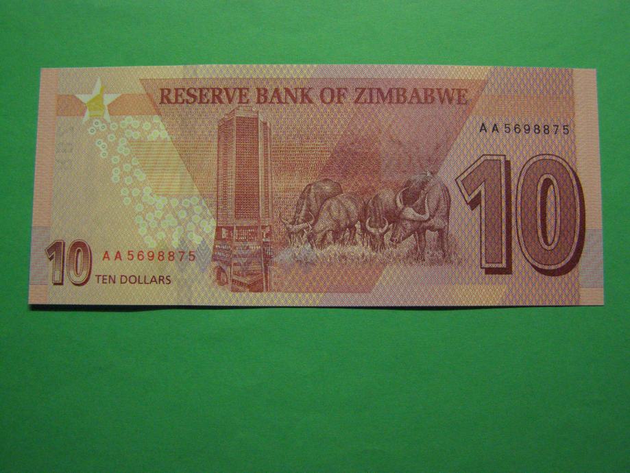 Prodam PRENOVLJEN bankovec za 10 Dolarjev iz Zimbabweja (10 ZWD), kot ga lahko vidite na fotografijah in je povsem nov - UNC kvalitete.