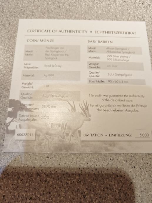 Kovanec je iz serije Krugerand bar-Springbok edition.