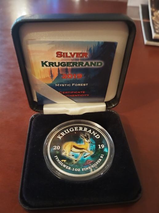 Prodam unčni srebrnik Barvni Krugerand-Mystic Forest