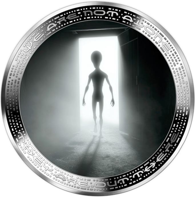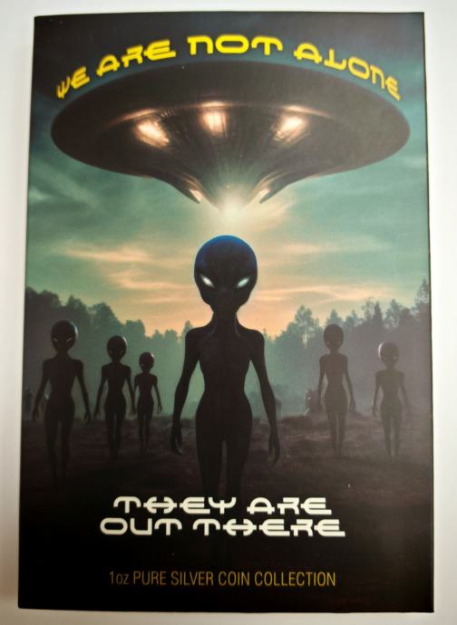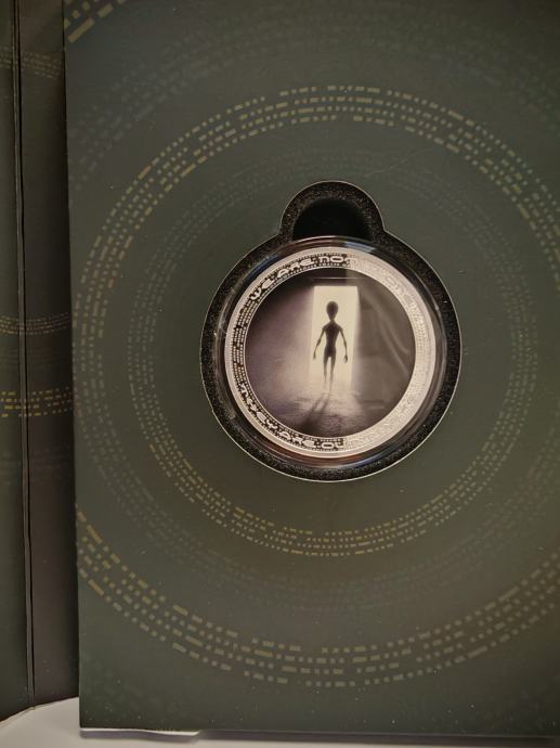 SREBRNIK WE ARE NOT ALONE - ALIEN IN DOOROPENING - zelo redek - PROOF