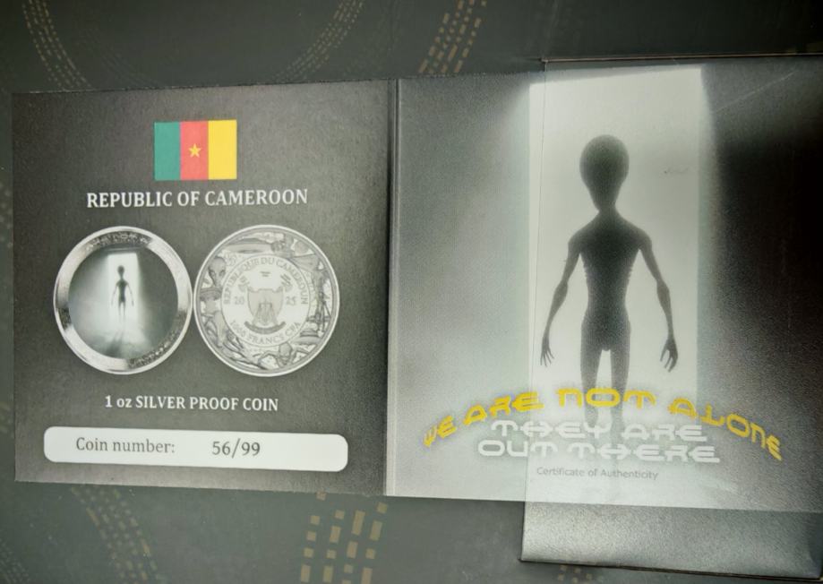 Prodam srebrnik 1OZ čistine 999,9 iz serije WE ARE NOT ALONE 2025 Cameroon.