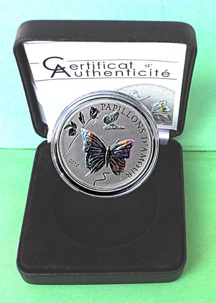 Obstajajo metulji, ki nimajo pigmentov, toda kljub temu ustvarjajo čudovit mavrični, barvni sijaj. To dosežejo z razporeditvijo luskic na katere vpade svetloba in se odbije v mavričnih odtenkih. Te zanimive lastnosti se pokažejo tudi na izdelavi tridimenzionalnega holograma, kot ga ima ta prečudovit srebrnik. Mavrične barve plešejo med večbarvnim spektrom in matiranimi površinami srebrnika. Prepričajte se sami in pustite se očarati.
