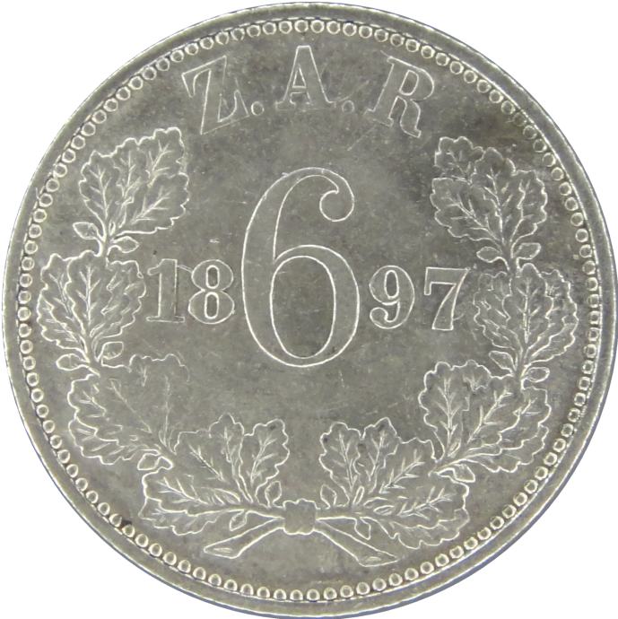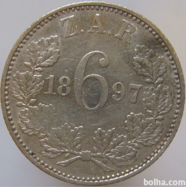 LaZooRo: Južna Afrika 6 Pence 1897 XF/UNC - Srebro