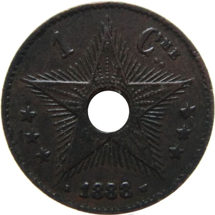 LaZooRo: Belgijski Kongo 1 Centime 1888 XF/UNC redek