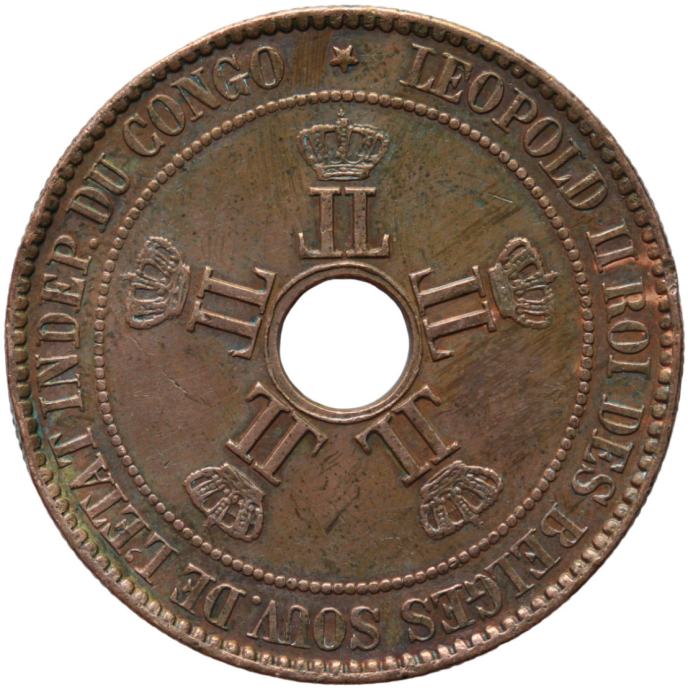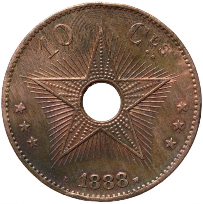 LaZooRo: Belgijski Kongo 10 Centimes 1888 VF / XF redek