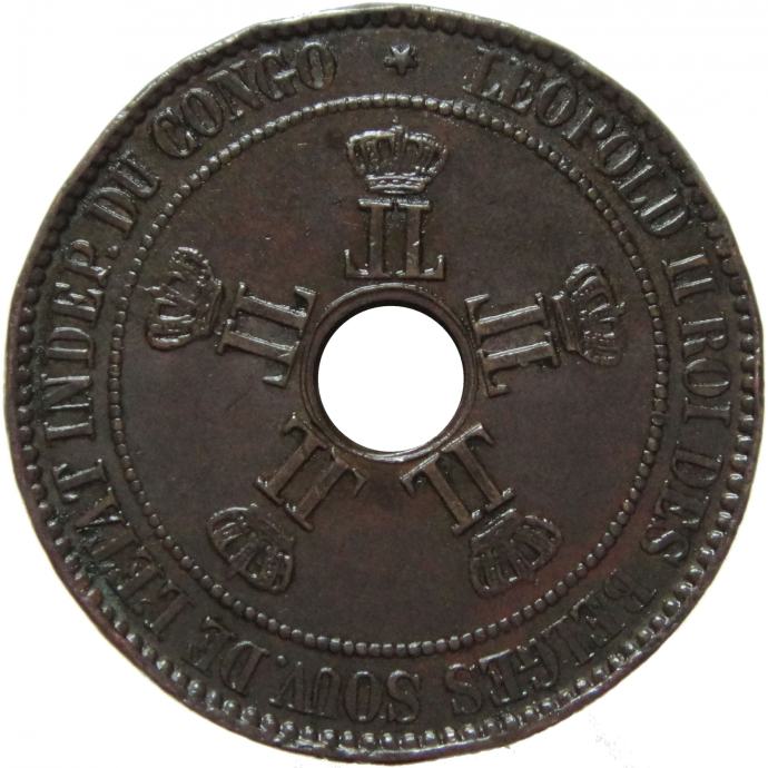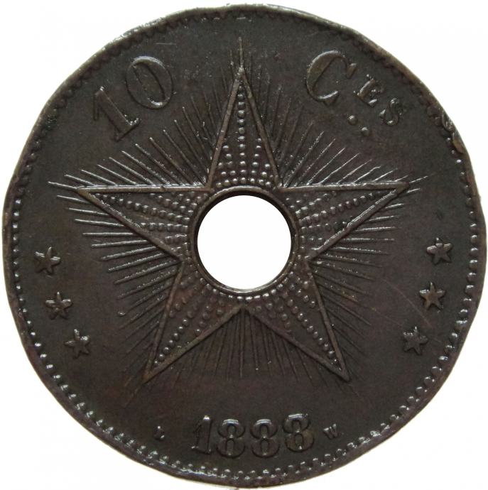 LaZooRo: Belgijski Kongo 10 Centimes 1888 VF/XF redek