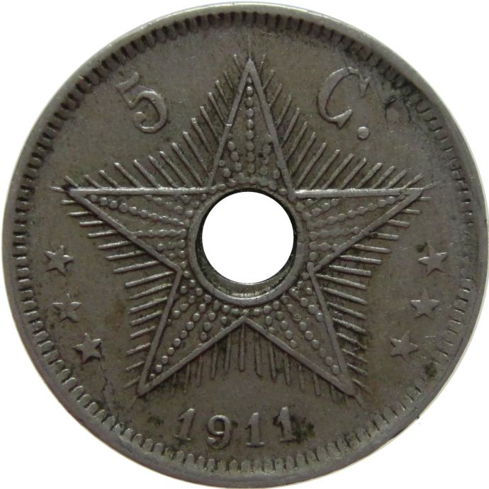 LaZooRo: Belgijski Kongo 5 Centimes 1911 XF