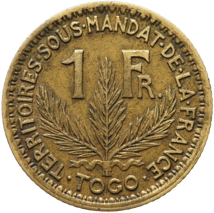 LaZooRo: Francoski Togo 1 Franc 1924 XF