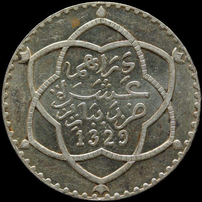 LaZooRo: Maroko 1 Rial 1911 UNC - srebro