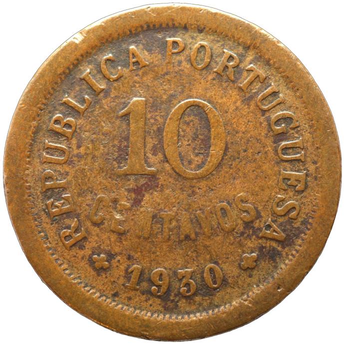 LaZooRo: Portugalski Zelenortski otoki 10 Centavos 1930 VF