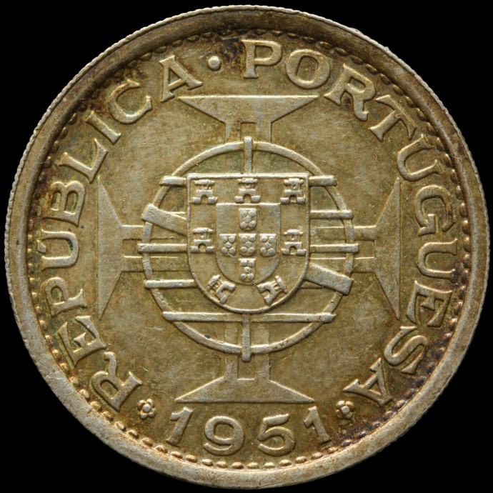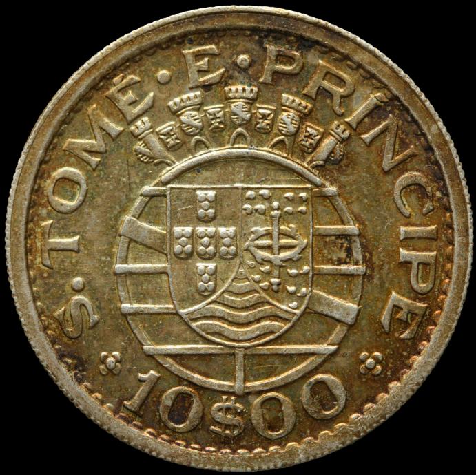 LaZooRo: Sveti Tomaž in Princ 10 Escudos 1951 UNC redek in mavrica - Srebro