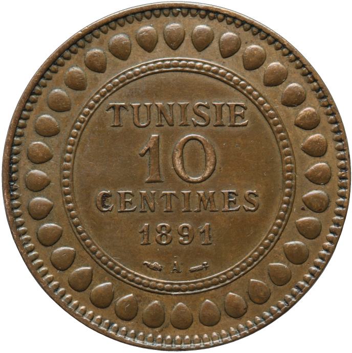 LaZooRo: Tunizija 10 Centimes 1891 XF