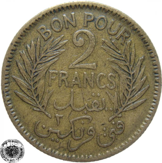 LaZooRo: Tunizija 2 Francs 1945 VF/XF