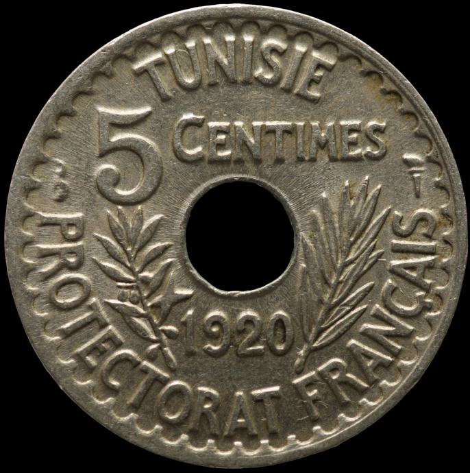 LaZooRo: Tunizija 5 Centimes 1920 UNC