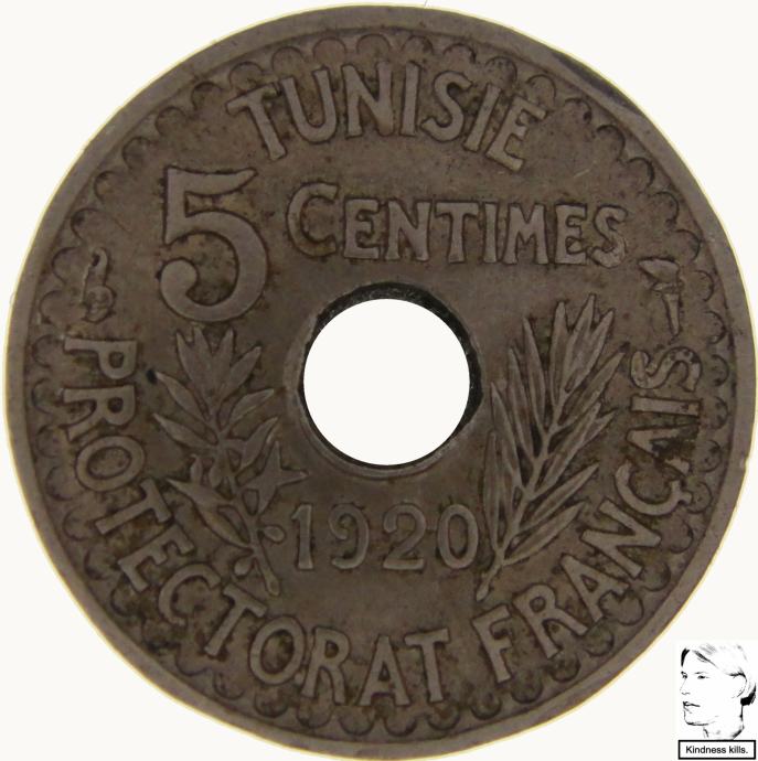 LaZooRo: Tunizija 5 Centimes 1920 XF