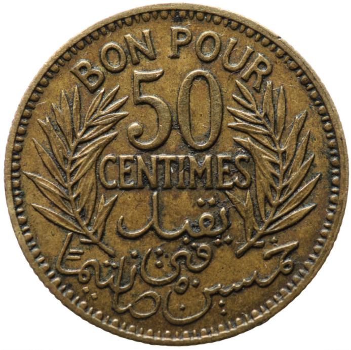 LaZooRo: Tunizija 50 Centimes 1933 XF