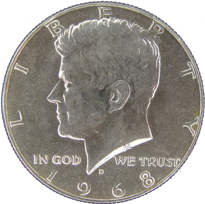LaZooRo: Združenih države 1/2 Dollar 1968 D - srebro