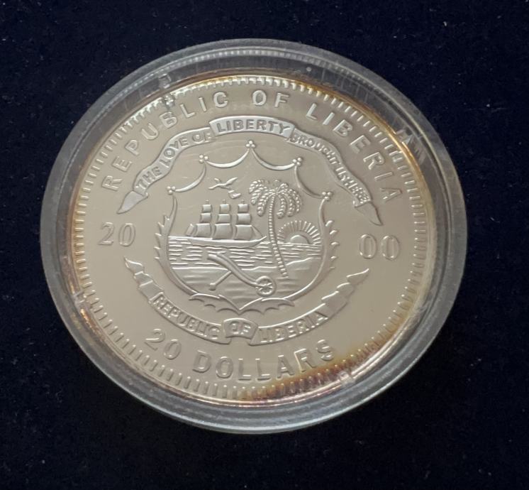 2000, Liberija, 20 dollars, proof