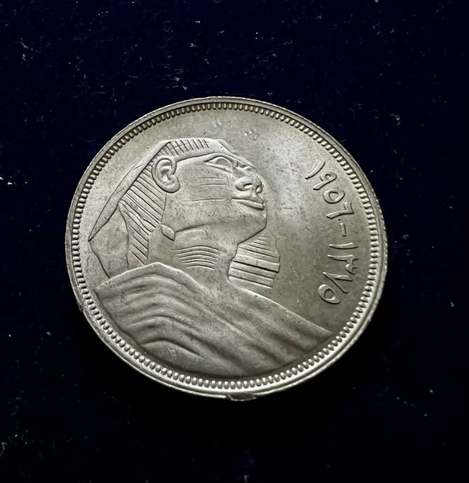 Ta prelep kovanec s staroegipčanskim motivom so oblasti izdale ob odhodu še zadnjih britanskih vojakov iz Egipta.