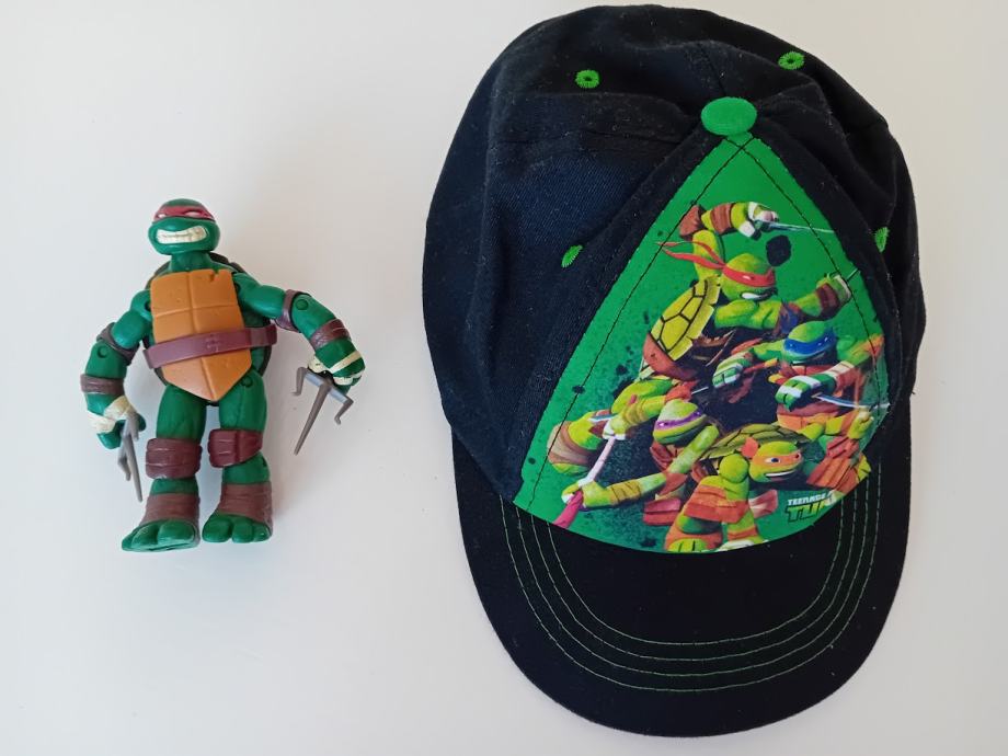 Prodam odlično ohranjeno figuro Ninja želve - Raphael in kapo s šiltom z motivom Ninja želv. Cena: 5 € + ptt.