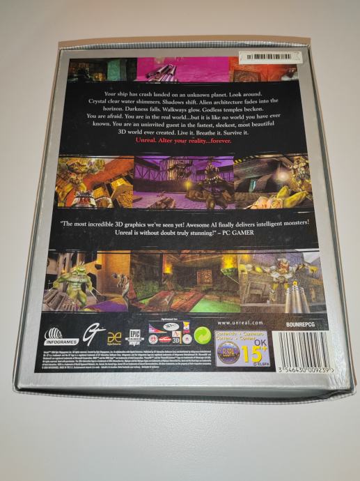 Prodam igro Unreal. Na slikah lahko preverite stanje in vsebino škatle.