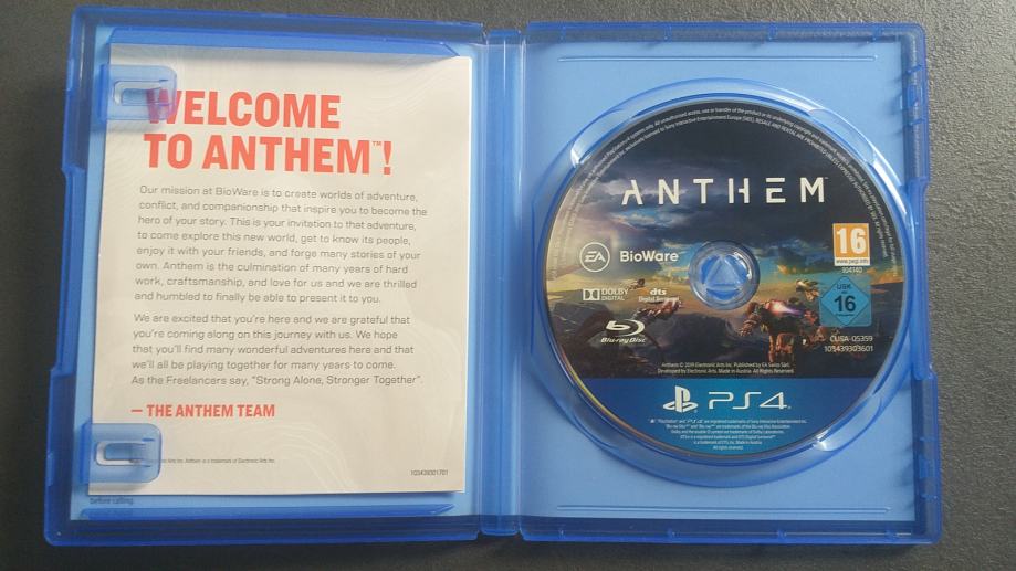 Odlično ohranjena igra Anthem za konzolo Play Station 4.