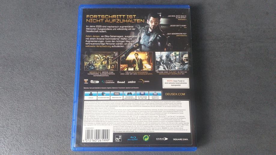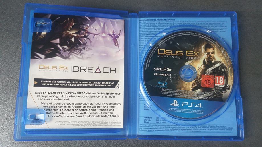 Odlično ohranjena igra Deus Ex Mankind Divided za konzolo Play Station 4.