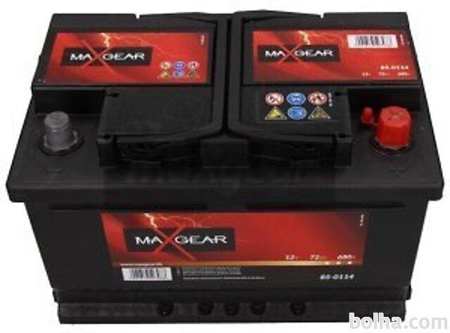 Akumulator MaxGear. Lastnosti: Napetost 12V, kapaciteta akumulatorja 72Ah. Garancija 12 mesecev.