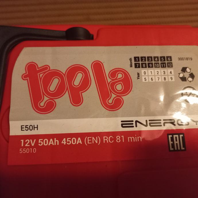 Ugodno prodam popolnoma nov akumulator topla 50Ah 12v.