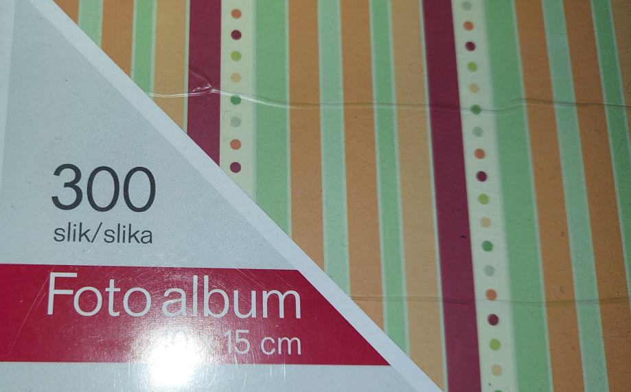 - pisan s pokončnimi črtami,22.5 x 32.5 cm, z žepki za 300 10x15 cm fotografij in prostorom za tekst, NEUPORABLJEN, 9 Eur