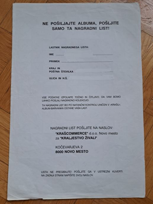 Poštnina ni zajeta v ceni, v Mariboru pa vam nagradni list lahko dostavim brezplačno.