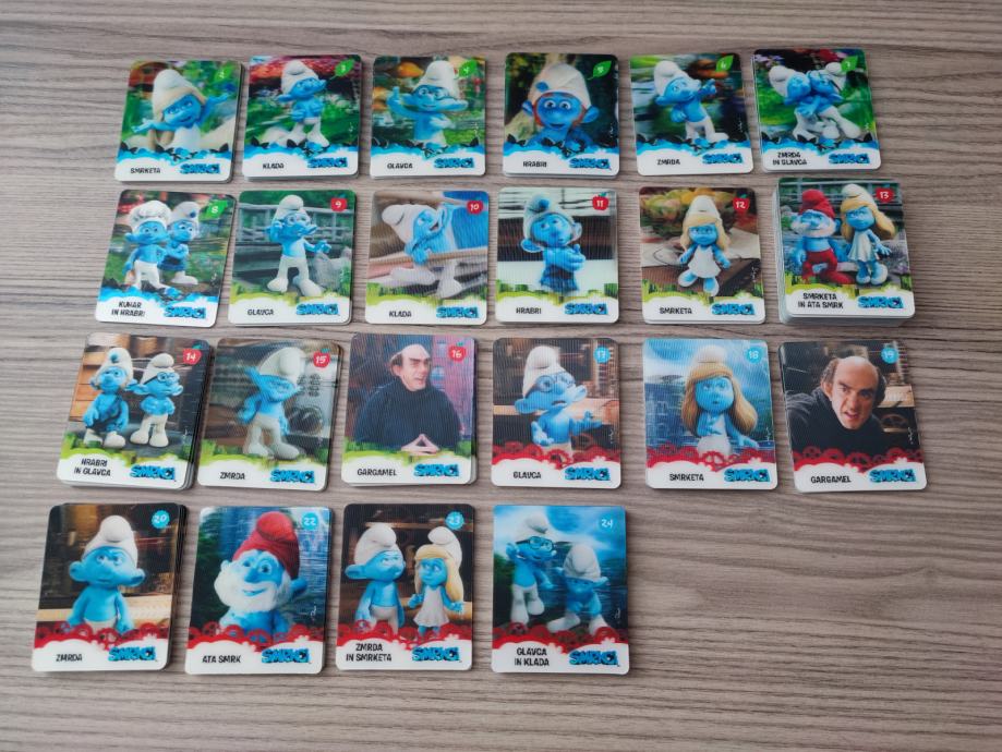 Prodam 3D kartice Smrkci. Z njimi lahko igrate družabno igro ZASMRKAJ.