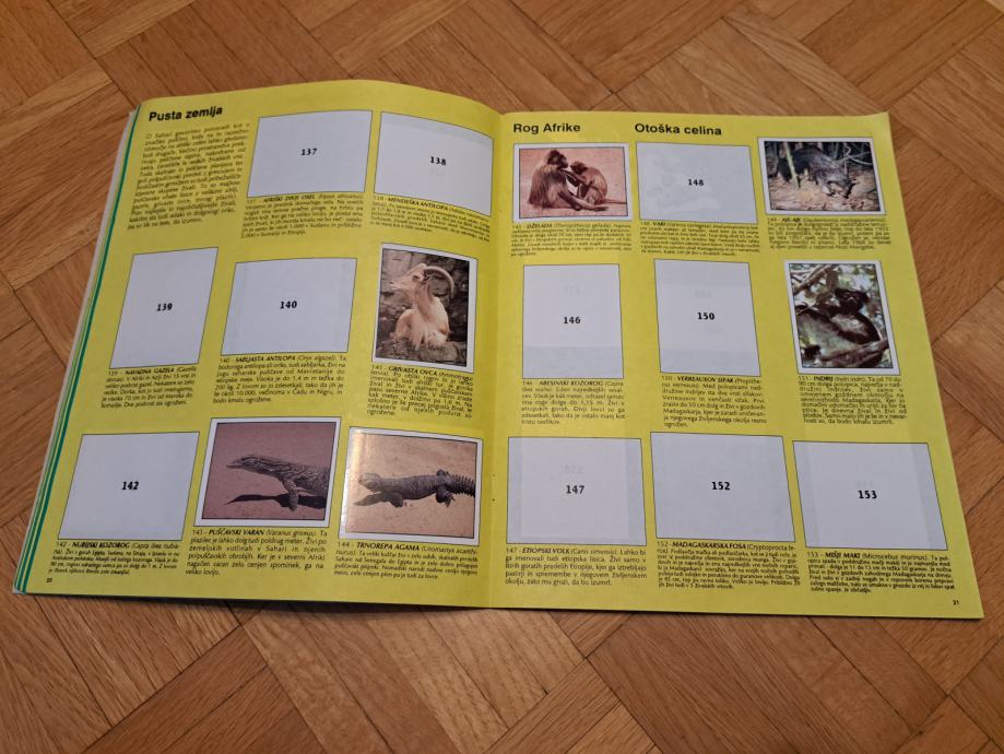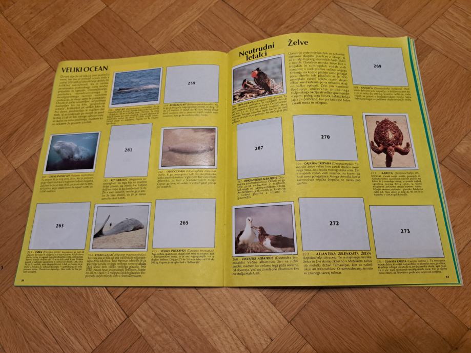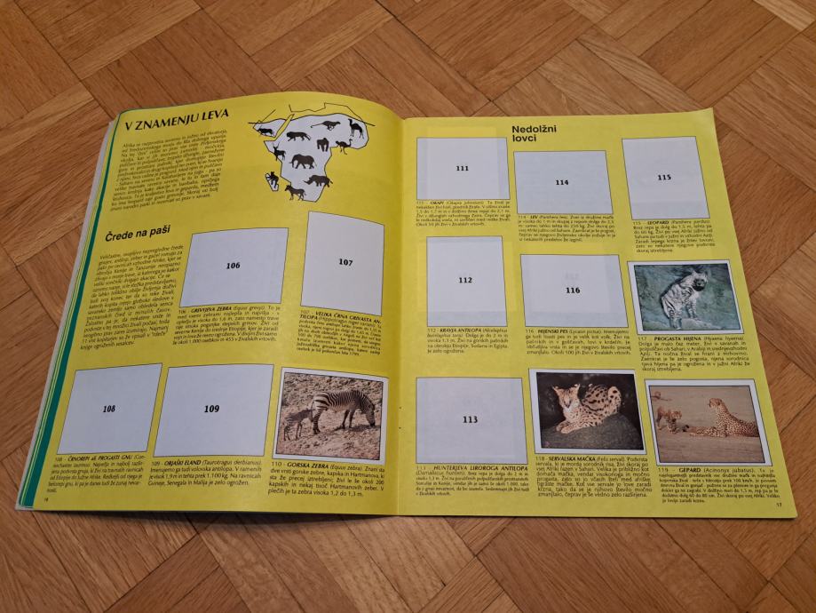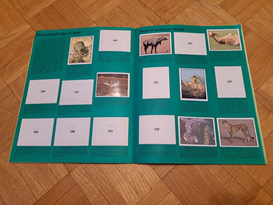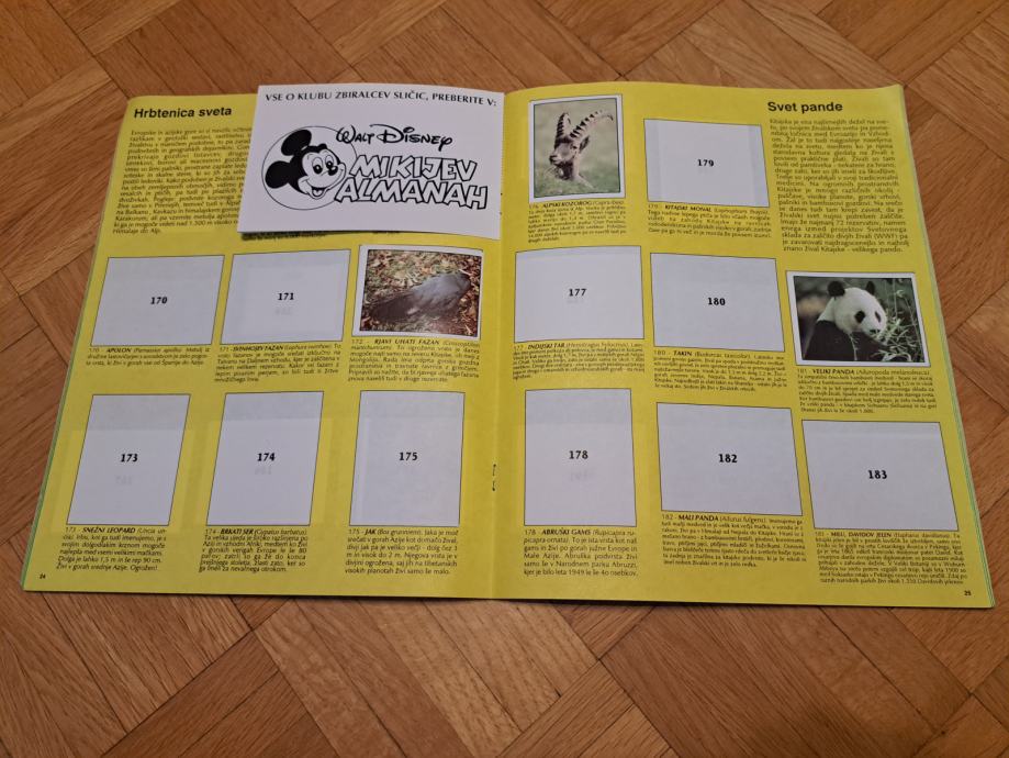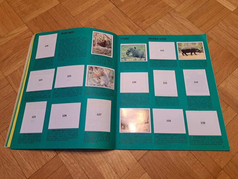 Zelo lepo ohranjen album z nalepljenih (če sem O.K. štel) 116 sličic od možnih 360. Recimo, da ima nalepljenih 1/3 sličic.