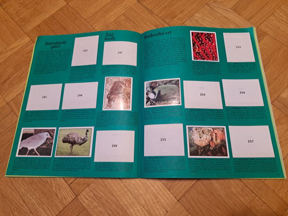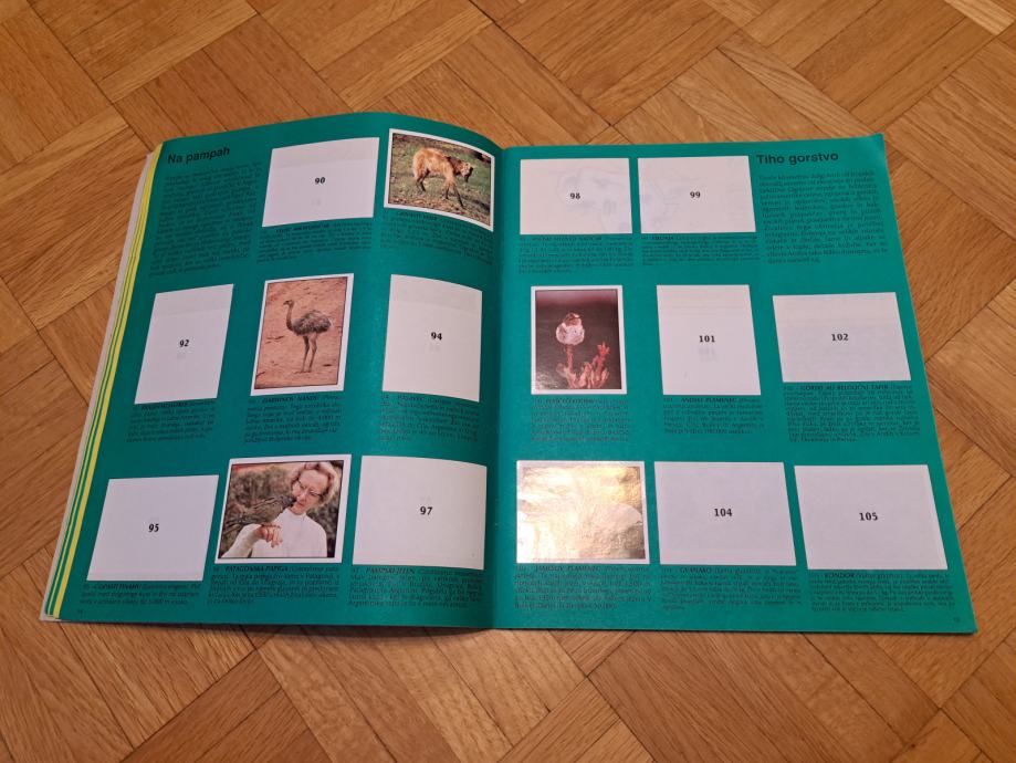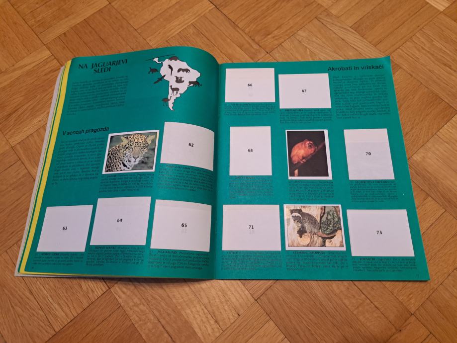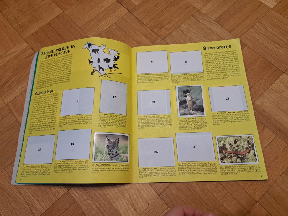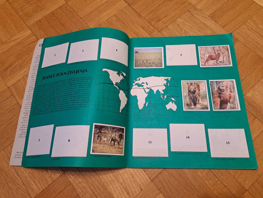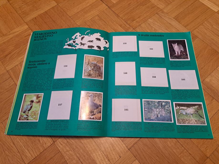 Zelo lepo ohranjen album z nalepljenih (če sem O.K. štel) 116 sličic od možnih 360. Recimo, da ima nalepljenih 1/3 sličic.