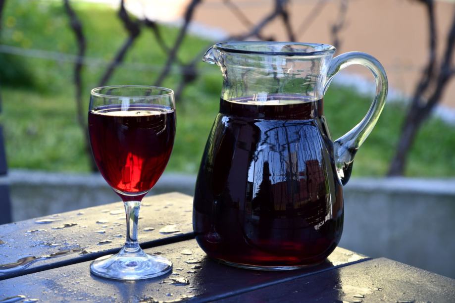 Domače RDEČE VINO, iztisnjeno iz starih sort grozdja (Jurka, Kvinton) - neškropljeno.
