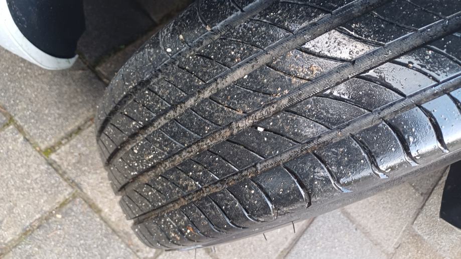 Ta ki so naslonjena na avto, imajo nekaj prask od robnikov iz centra Ljubljane. Na njih so letne gume Kumho 205/55/17, letnik 2018, z 5-6mm profila. Zelo malo vožene, lansko sezono še popolnoma normalno opravljala svojo nalogo.