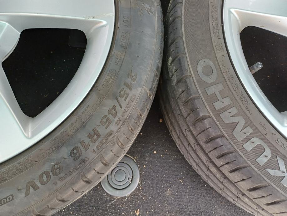 Na njih so letne gume, 7mm profila, 215/45/16 Kumho, letnik 2021