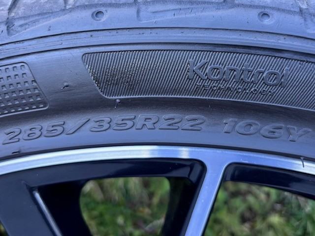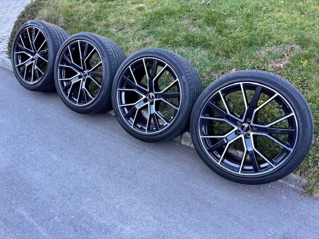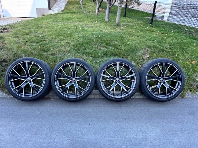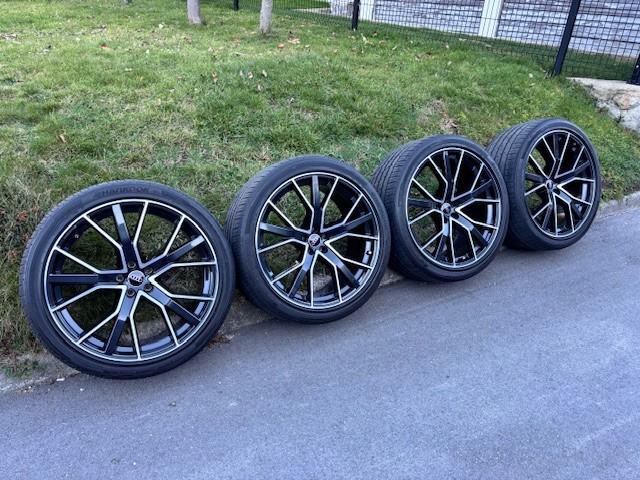 Prodam rabljena originalna alu platišča znamke Audi Sport Black,22 col,premer med vijaki 5x112mm,sredinska luknja 66,6mm,ET26,brez poškodb,z letnimi gumami Hankook Ventus S1 Evo2 SUV,dimenzije 285/35-22,dot0124,profil 7mm,nepoškodovane in enakomerno obrabljene.Gume so bile nove kupljene letos Junija v vrednosti 1200€ in vožene samo 2 meseca na Audiju Q7.Komplet je primeren tudi za Audi Q8 in Volkswagen Touareg.