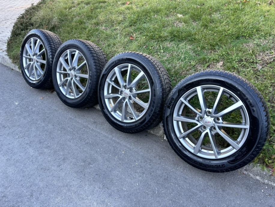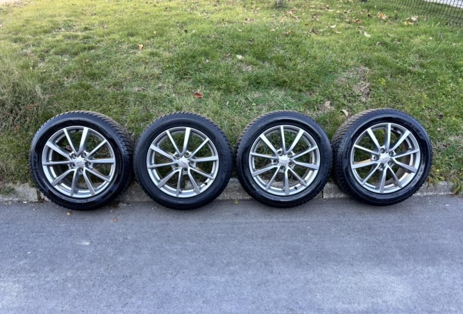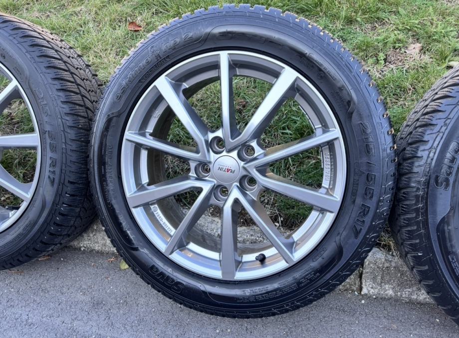 Prodam rabljena alu platišča 17 col,premer med vijaki 5x112mm,sredinska luknja 57,1mm,ET38,brez poškodb,z zimskimi gumami znamke Sava Eskimo HP2,dimenzije 215/55-17,dot1120,profila 7mm,vožena na VW Passatu,primerna pa so tudi za ostala vozila znamk Volkswagen,Seat,Škoda.Cena je za komplet!